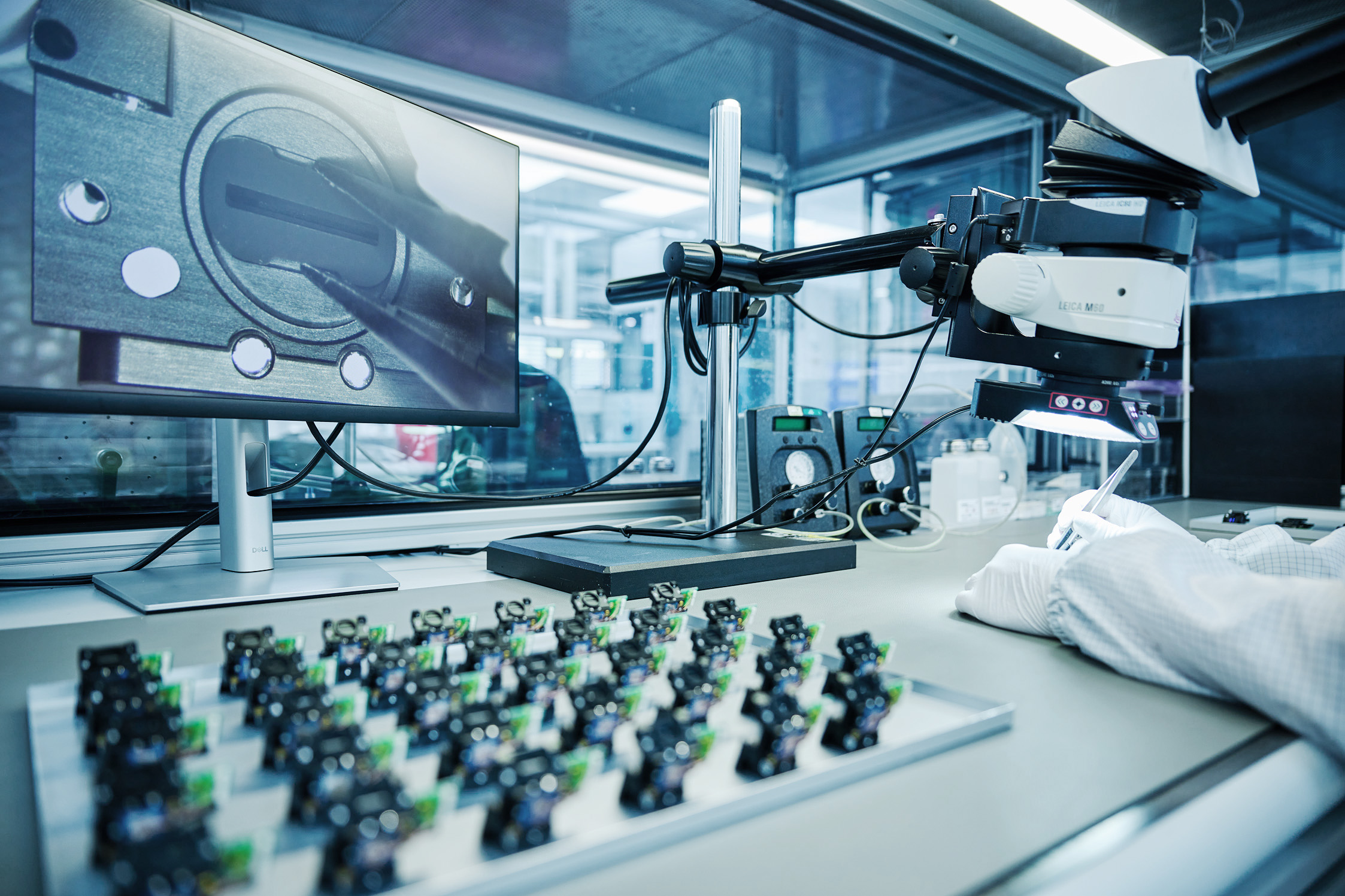 APM Technica AG dispose de nombreuses et vastes salles blanches avec des postes de travail ESD.